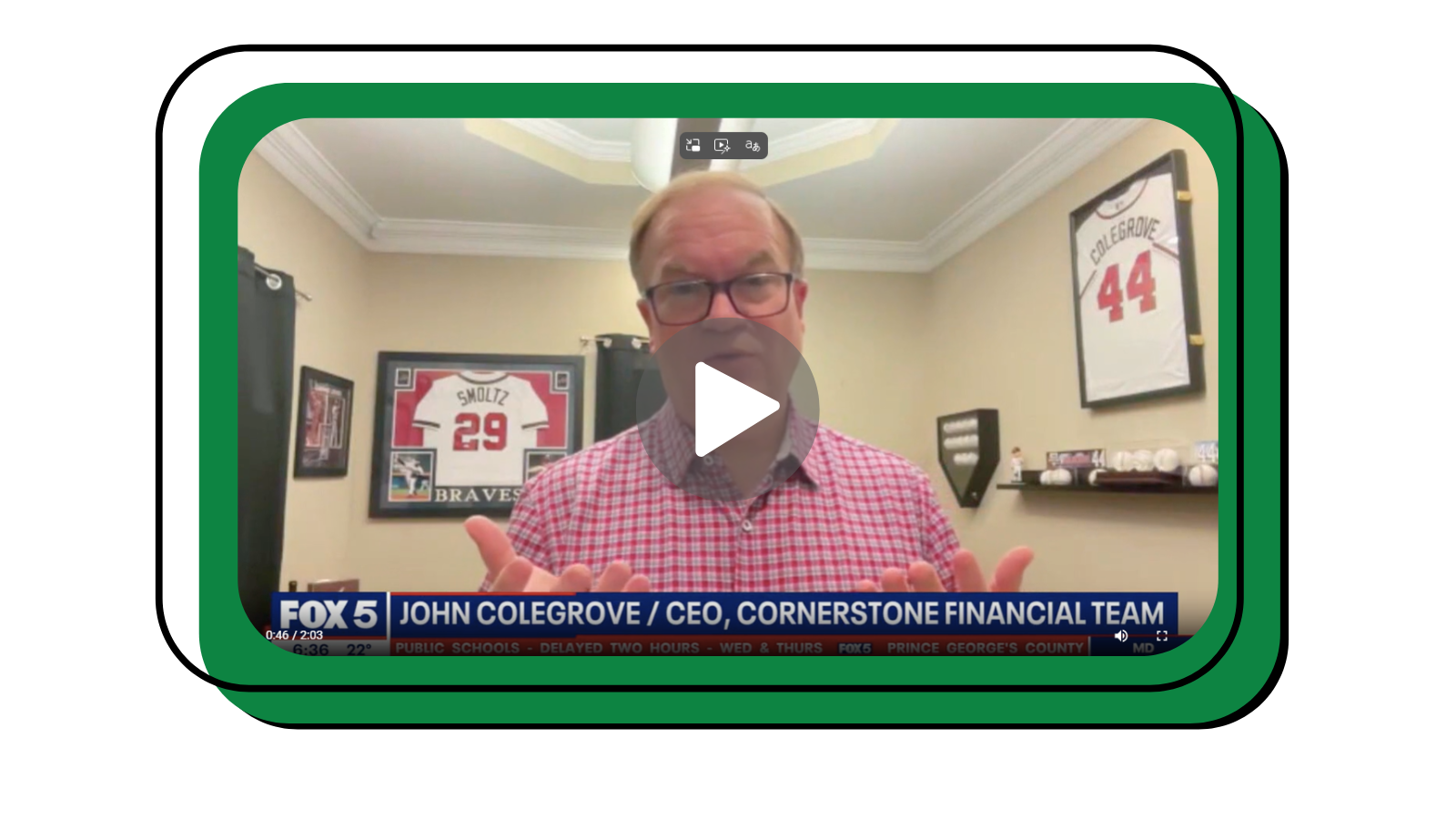 Join John Colegrove of Cornerstone Financial Team on the Red Clay on Wall Street Podcast as he breaks down the latest financial news and trends in a way that makes sense to Main Street. Get ready for relatable client stories, professional insights, and actionable tips to help you build a more confident financial future.